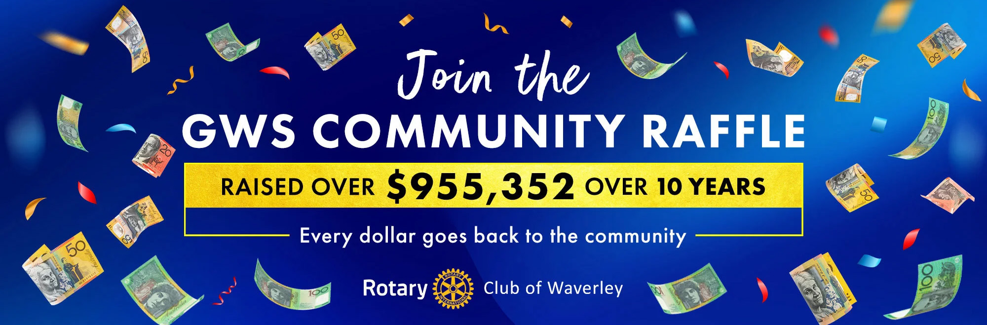 The Rotary Club of Waverley in conjunction with GWS Automotive Group invite participation from Local Schools, Sporting Clubs, Charities & Community Groups to be involved in the 2026 "GWS Community Raffle".